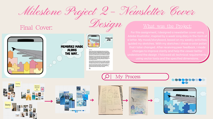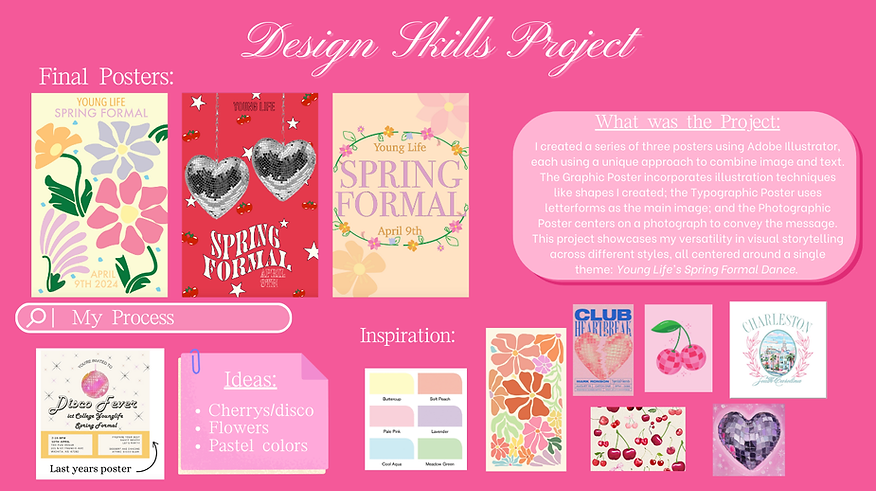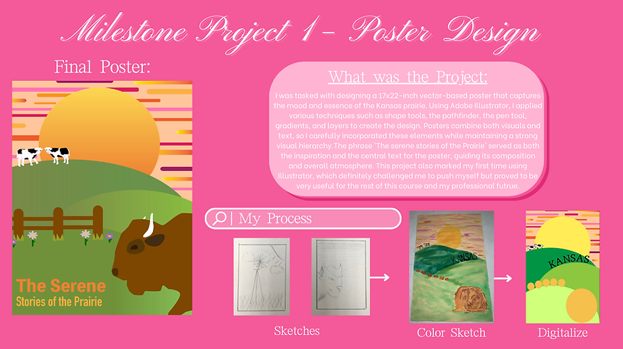 In my Graphic Design Concepts class, I gained a greater understanding of Adobe Illustrator and the design process, which expanded my creative thinking. I worked on multiple projects, including creating posters that incorporate text, photographs, and graphics, as well as designing a logo and a newsletter cover that tells a story. Below, I’ve shared the projects I worked on in class and the creative process behind each design.